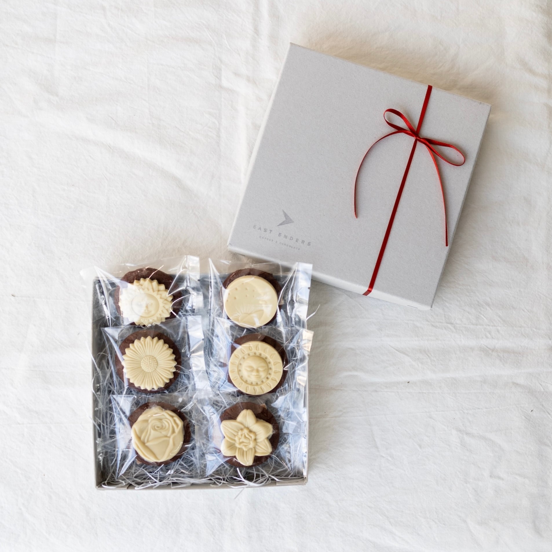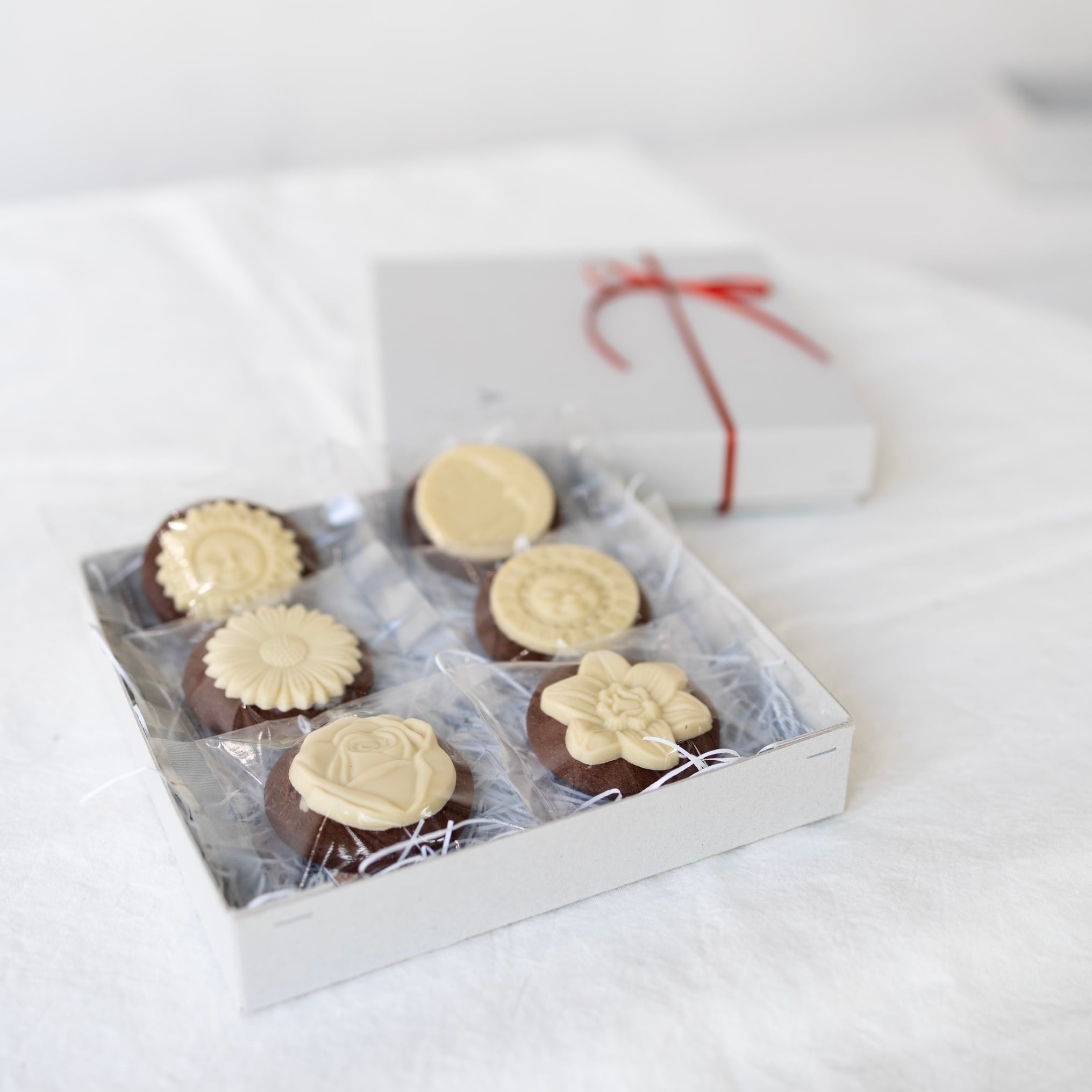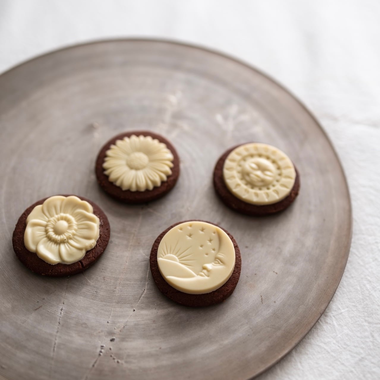 お花や太陽、月などのモチーフを模ったチョコレート。